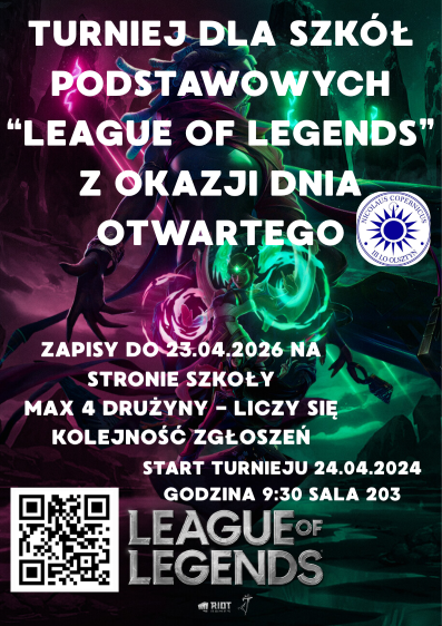 Rejestracja do turnieju Leagua of Legends dla Szkół Podstawowych przez cwirko.arkadiusz · Opublikowano 13 kwietnia 2026 · Zaktualizowano 13 kwietnia 2026 Link do zapisów: