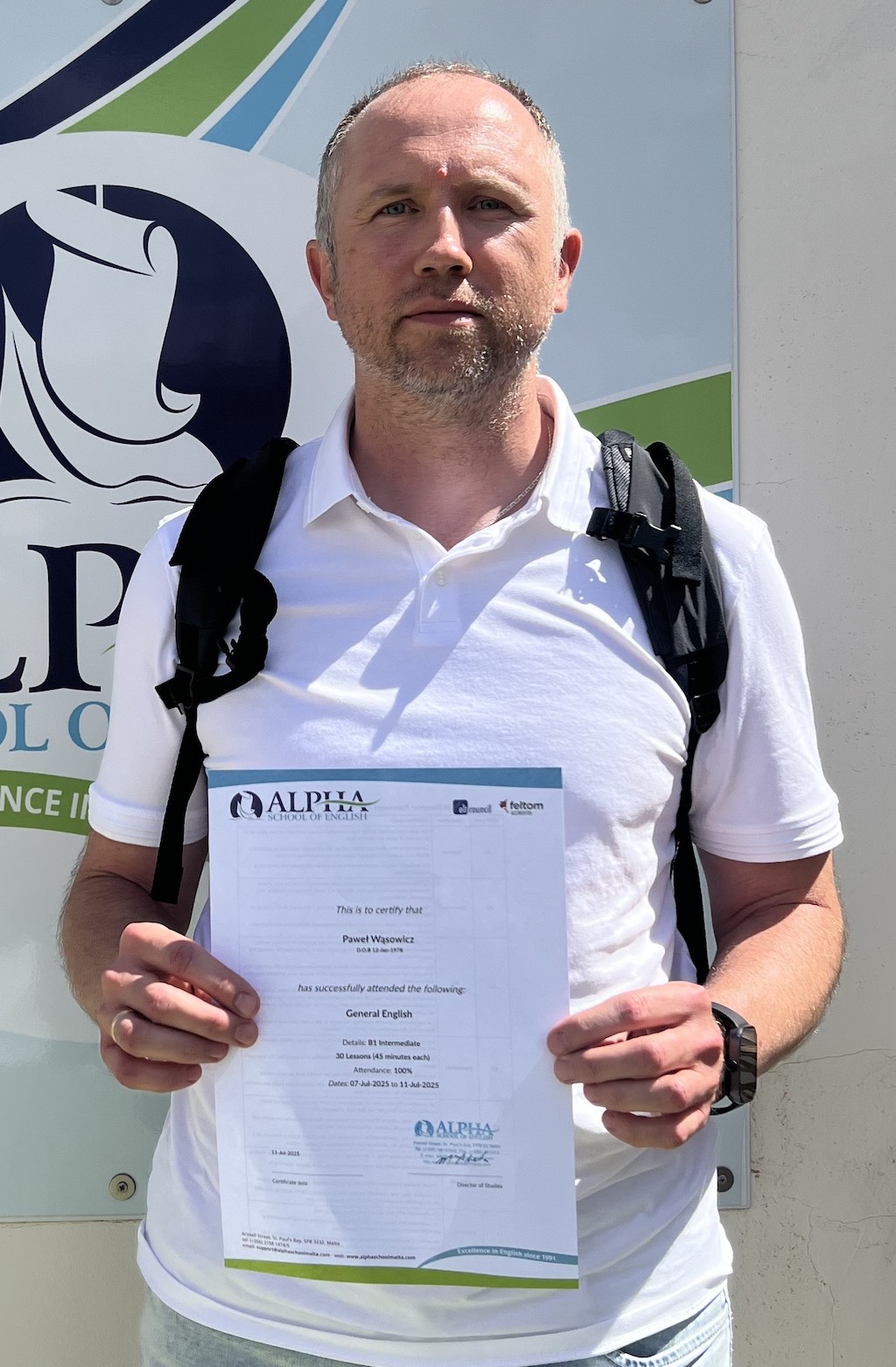 W dniach 7-11 lipca 2025 roku nauczyciel wychowania fizycznego Paweł Wąsowicz uczestniczył w kursie General English Course zorganizowanym w Alpha School of English (St. Paul’s Bay, Malta). Kurs obejmował wiele zagadnień i bloków tematycznych. Jednak główne akcenty skierowane był na poprawę kompetencji w zakresie posługiwania się językiem angielskim. Uczestnicy kursu doskonalili budowanie wypowiedzi, zadawanie pytań czy prowadzenie dyskusji na wybrane tematy. Codzienny kontakt pomiędzy uczestnikami kursu, rozmowy z nimi, wymiana doświadczeń czy dzielenie się spostrzeżeniami było doskonałą okazją do przełamywania oporów w posługiwaniu się językiem obcym. Była to również wspaniała okazja do zapoznania się z historycznym, kulturalnym i kulinarnym dziedzictwem Malty.